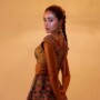 Leaning heavily into craftsmanship, Ananya Panday’s look, styled by Priyanka Kapadia, in a Mayyur Girotra lehenga was rich in tones of yellow and blue, and hand-embroidered with mirror work and resham florals. Kapadia paired it with a mustard yellow blouse worked in botanical motifs, its cropped fit defining the waist against the gilded, cobalt-toned expanse below. Polki and meenakari jewellery by Golecha—an emerald-and-pink necklace, earrings, earcuff and a matching bangle set—extended the festive overtones, while makeup stayed radiant with a dewy base, centre-parted hair pulled back in a braid and a small bindi.