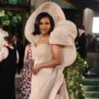 A custom strapless iridescent gown by Tory Burch with a clutch dusted with Swarovski crystals made up her look for ‘Manus x Machina: Fashion in an Age of Technology’. Incorporated with hidden batteries and multi-pixel technology, the nifty case changed colour with shifting intensities of light.