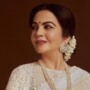 Nita Ambani wore custom Abu Jani Sandeep Khosla. Her off-white sari featured Phulwari hand-embroidery, intricate Resham work, touches of Zardozi and a pearl-encrusted chevron border. She paired it with a matching double-layered blouse. Her hair was in an updo, adorned with a gajra.