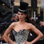 Jenner hit the catwalk wearing a glitzy showgirl look originally worn by Nicole Kidman as Satine. The crystal-encrusted bodysuit, created by Martin, kicked off the first act of the show—an ode to classic Hollywood glamour. (Kidman, meanwhile, opened the show in custom Chanel).