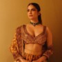 To offset the golden yellow canvas of the lehenga, Malavika Mohanan reached for an emerald choker from Gehna Jewellers. By choosing to forgo earrings altogether, she let the neckpiece command all the attention. For beauty, Mohanan embraced an understated yet sultry look. Her hair was pulled back into a polished ponytail, a choice that highlighted the outfit and added a contemporary edge. Her makeup followed suit, with soft smoky eyes, sculpted cheeks and a caramel nude lip. The result balanced Valaya’s maximalist detailing with streamlined styling, showing how craft-heavy couture can feel current.