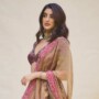 A pale gold tissue silk lehenga serves as the canvas of the look. As the New Delhi-based designer explains, “Navya Nanda wears Mayyur Girotra gold tissue silk signature lehenga. The skirt is paired with a vintage brocade blouse, which is intricately hand-embroidered in zardozi and tilla that is inspired by archival motifs. From the fabric to craft, it carries stories of the past into the present.” The time-honoured designs hark towards patterns that once adorned bridal trunks and temple textiles. The delicate craftsmanship techniques add depth and just the right dose of opulence.