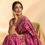 In rani pink silk scattered with emerald and turquoise motifs, Sonali Bendre’s latest sari is unmistakably Patola; the double ikat weave from Gujarat, known for its complexity and time-intensive process. Silk threads are first dyed with natural colours and then woven together to create intricate patterns. The double ikat process ensures that patterns appear identical on both sides of the fabric.