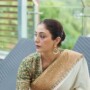 For her Navratri look with Kalyan Jewellers, Tabu turned to a reimagined kasavu sari by Heena Kochhar. Traditionally woven in cotton and worn during Onam or Vishu, the kasavu was here crafted in silk georgette with a handloom tissue finish, making the drape lighter and more fluid. Instead of the expected underskirt, Kochhar paired it with a woven chanderi lehenga-style woven chanderi petticoat that added volume while keeping the familiar white-and-gold lines intact. Fine zari and sitara ari embroidery edged the sari, lending texture without crowding its simplicity.