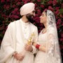 The couple chose Sabyasachi for their sacred Anand Karaj ceremony. Dressed in an ivory lehenga and sherwani, they went for a cohesive and sophisticated look for their special day. “I wanted to feel like a princess, and this lehenga was ethereal. Nausher’s outfit had a classic, sophisticated silhouette,” she adds. Bedi accessorised her outfit with a maang tikka, nath, and classic gold kaleeras and chooda, along with a polki set with rubies. She complemented her look with elegant, feminine makeup by Sneha Chowdhary.